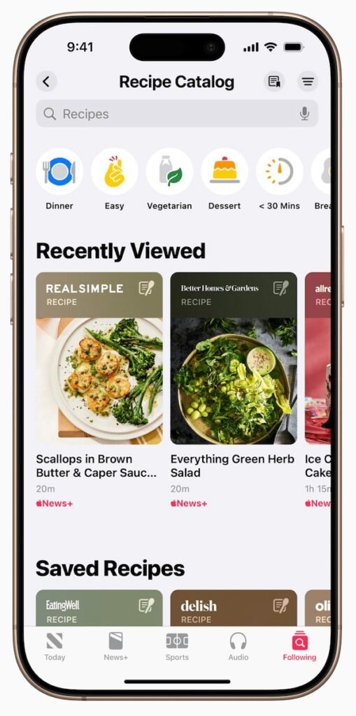 But wait, there’s more! The new Food feature is designed to make your culinary journey seamless and inspiring. Apple News editors will handpick stories to keep you informed and entertained, while the Recipe Catalog will let you browse, search, and filter through a treasure trove of recipes. And the best part? New recipes will be added every single day, so you’ll never run out of fresh ideas to try in the kitchen.