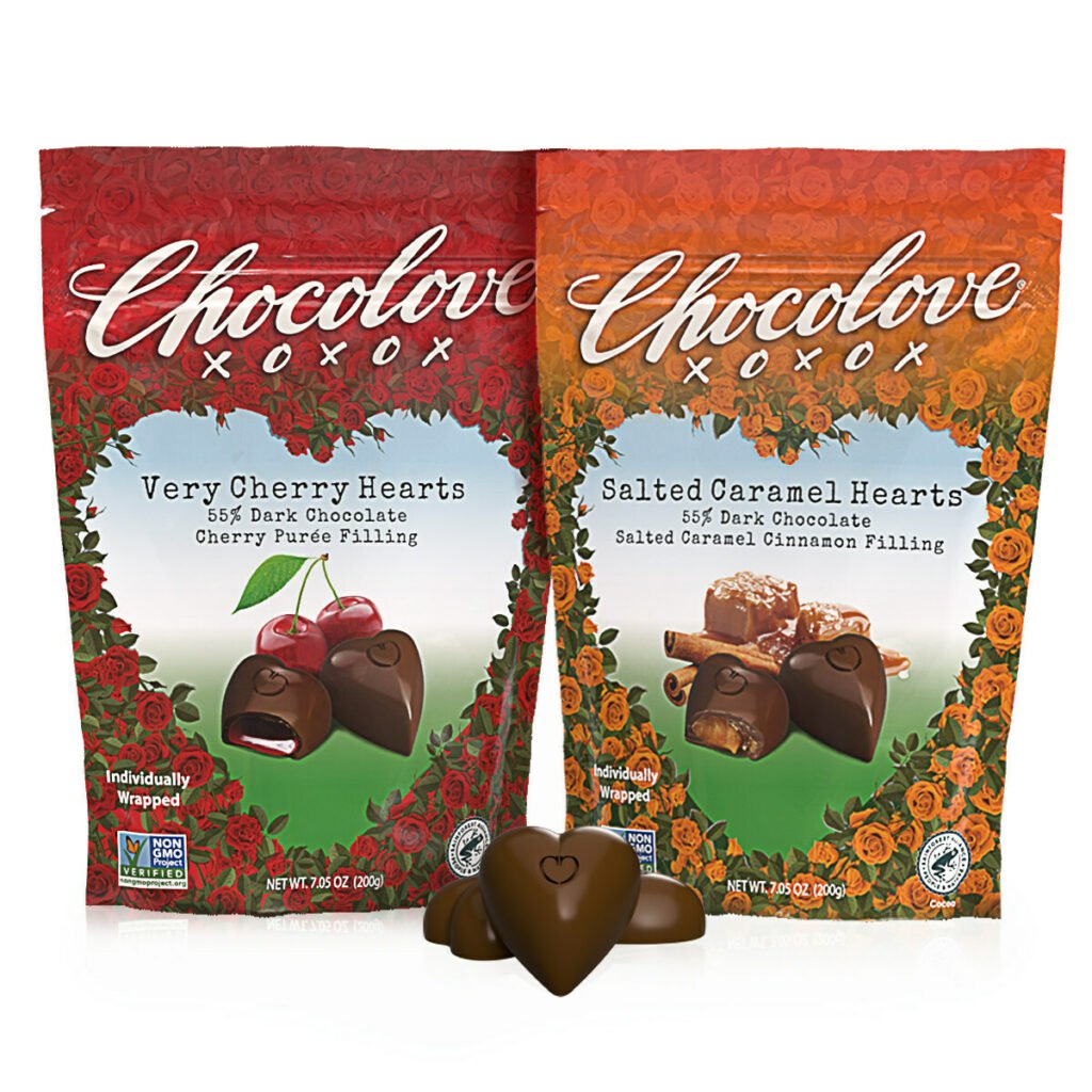 Chocolove, the Boulder, Colo.-based leader in chocolate quality, flavor innovation and sustainability for nearly 30 years, has Valentine’s Day celebrations covered with special dark chocolate heart-shaped bites in Very Cherry and Salted Caramel with Cinnamon flavors. Festive bars in Cherry Cordial, Ruby Raspberry Rose and Cinnamon Ganache flavors also return for a limited time.