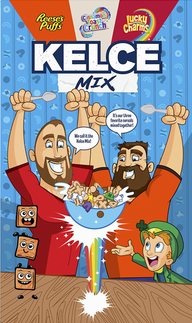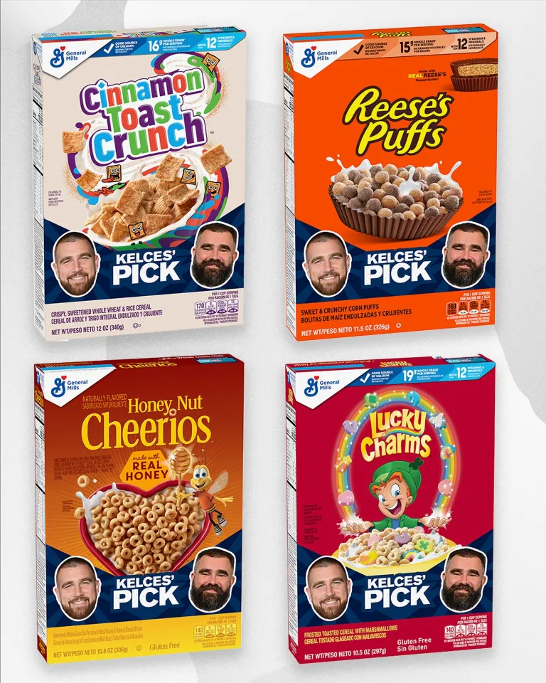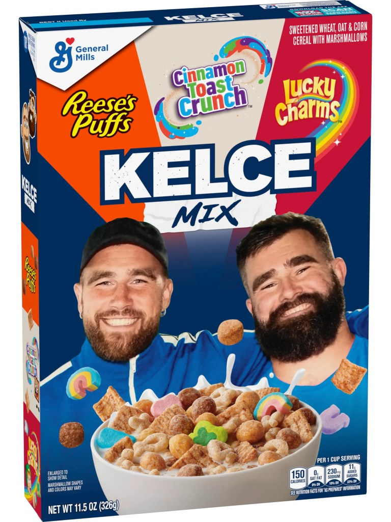 In a first-of-its-kind cereal from General Mills, ‘Kelce Mix Cereal’ combines Travis and Jason’s top three favorite cereals: Cinnamon Toast Crunch, Lucky Charms, and Reese’s Puffs cereal, into one delicious bowl.