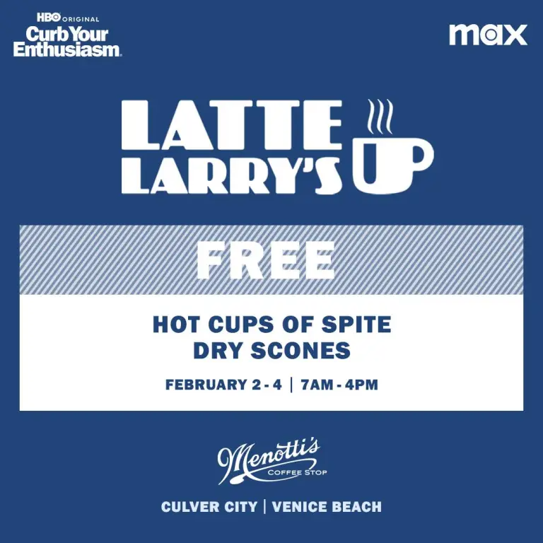 In partnership with Max, streaming home to the beloved series, “Latte Larry’s” will be serving up “Hot Cups of Spite” and “Extra Dry Scones” in Culver City (12430 Washington Ave.) and Venice Beach (56 Windward Ave.) from Friday, Feb. 2 through Sunday, Feb. 4 from 7 a.m. to 4 p.m.