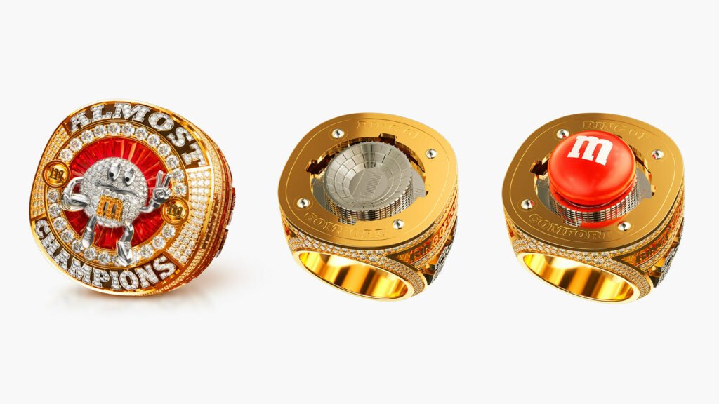 Crafted from the very essence of the iconic candy, this innovative ring showcases genuine diamonds, elevating it to a level of luxury that mirrors the excellence of the athletes it honors. The meticulous creation process takes place in a specialized lab, where M&M’s peanut butter candies are transformed into a tangible symbol of achievement. The result is a stunning fusion of confectionery creativity and sportsmanship, exemplifying M&M’s commitment to adding sweetness and excitement to every fan’s Big Game experience. Get ready to witness the union of sports history and candy artistry as M&M’s pays tribute to the “almost champions” in a way that is as delicious as it is unforgettable.